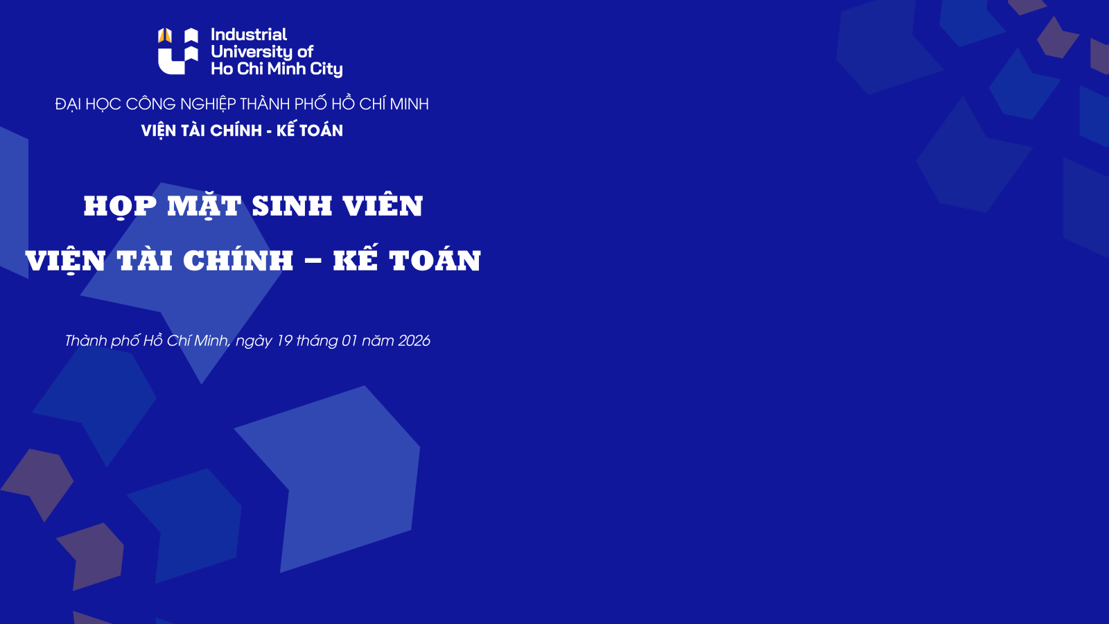 THÔNG BÁO Viện Tài chính – Kế toán toán thông báo họp mặt sinh viên khóa 19, 20, 21 Học kỳ 2 năm học 2025 - 2026 online qua phần mềm MS Team như sau: |
